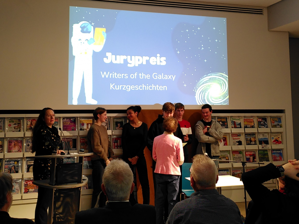 Am 3.11.2025 fand in der Stadtbibliothek Ludwigshafen die Preisverleihung des Arno-Reinfrank-Jugendwettbewerbs 2025 statt. In Erinnerung an den verstorbenen Autor Arno Reinfrank verleiht seine Witwe Jeanette Koch-Reinfrank Preise an junge Literaten, die in verschiedenen Altersgruppen Texte zu vorgegebenen Themen einreichen dürfen. Die Teilnehmer im Alter von 13 bis 21 Jahren sollten eine Kurzgeschichte zum „Writer of the Galaxy“ verfassen. Bei der Veranstaltung in der Stadtbibliothek wurden die Texte präsentiert. Neben der Juryentscheidung gab es auch jeweils ein Publikumsvoting.